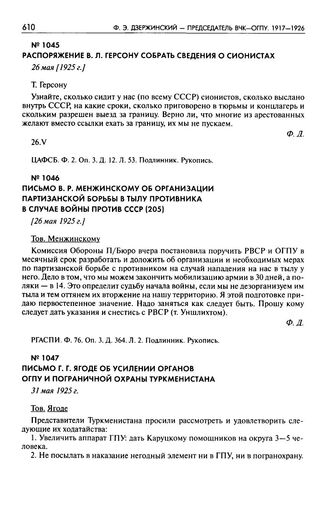 Распоряжение В.Л. Герсону собрать сведения о сионистах. 26 мая [1925 г.]