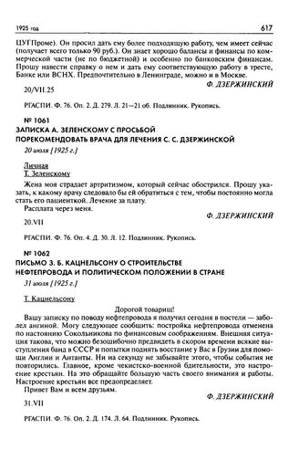 Письмо З.Б. Кацнельсону о строительстве нефтепровода и политическом положении в стране. 31 июля [1925 г.] // РГАСПИ. Ф. 76. Оп. 2. Д. 174. Л. 64. Подлинник. Рукопись.