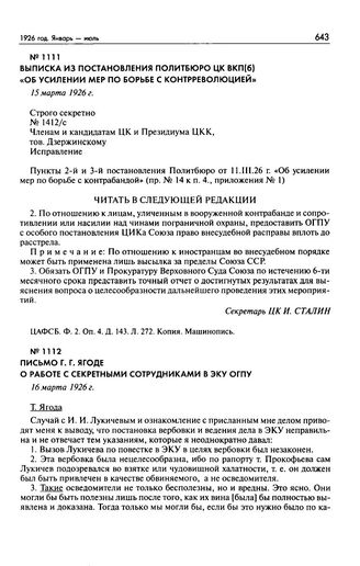 Главная Серия «Россия. XX век. Документы» Ф.Э.Дзержинский — председатель ВЧК—ОГПУ. 1917—1926 Письмо Г.Г. Ягоде о работе с секретными сотрудниками в ЭКУ ОГПУ. 16...