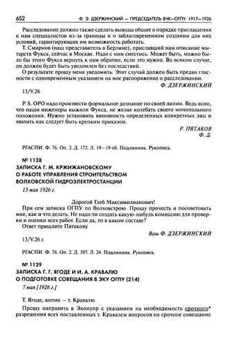 Записка Г.М. Кржижановскому о работе управления строительством Волховской гидроэлектростанции. 13 мая 1926 г.