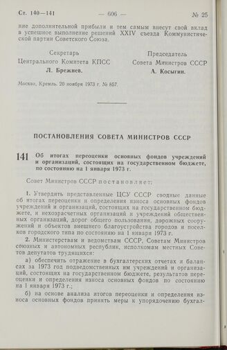 Главная Собрание законов и распоряжений правительства РСФСР и СССР Собрание законов и распоряжений Рабоче-Крестьянского Правительства ... Собрание постановлений правительства СССР за 1973 г. № 1-25 Документы Постановление Совета Министров СССР. Об итогах переоценки основных ...