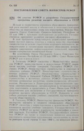 Постановление Совета Министров РСФСР. Об участии РСФСР в разработке Государственной программы развития высшего образования в СССР. 28 мая 1990 г. № 169