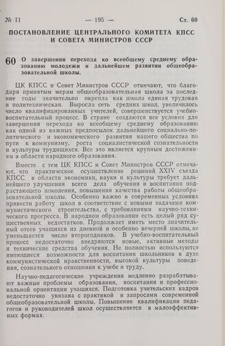 Постановление Центрального Комитета КПСС и Совета Министров СССР. О завершении перехода ко всеобщему среднему образованию молодежи и дальнейшем развитии общеобразовательной школы. 20 июня 1972 г. № 463
