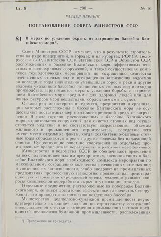 Постановление Совета Министров СССР. О мерах по усилению охраны от загрязнения бассейна Балтийского моря. 16 июля 1976 г. № 567