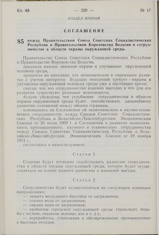 Соглашение между Правительством Союза Советских Социалистических Республик и Правительством Королевства Бельгии о сотрудничестве в области охраны окружающей среды. 25 июня 1975 г.