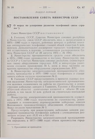 Постановление Совета Министров СССР. О мерах по ускорению развития телефонной связи страны. 2 августа 1976 г. № 610