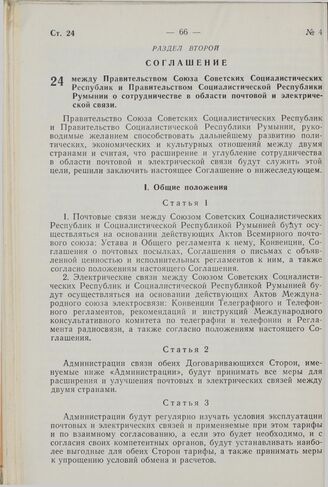 Соглашение между Правительством Союза Советских Социалистических Республик и Правительством Социалистической Республики Румынии о сотрудничестве в области почтовой и электрической связи. 17 марта 1976 г.