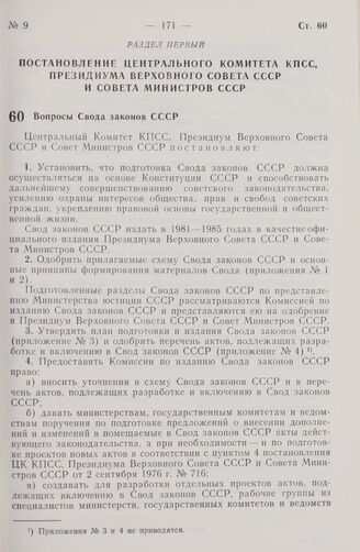 Постановление Центрального Комитета КПСС, Президиума Верховного Совета СССР и Совета Министров СССР. Вопросы Свода законов СССР. 23 марта 1978 г. № 229