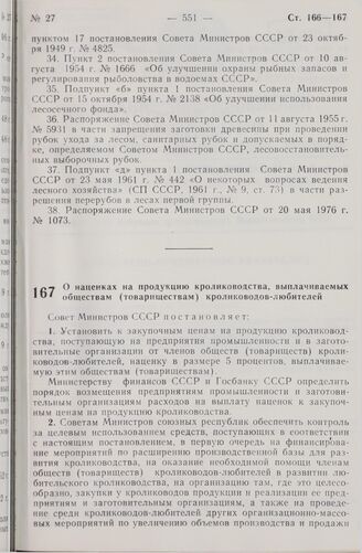 Постановление Совета Министров СССР. О наценках на продукцию кролиководства, выплачиваемых обществам (товариществам) кролиководов-любителей. 14 ноября 1978 г. № 908