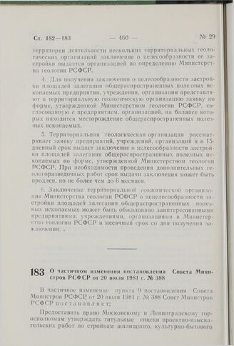 Постановление Совета Министров РСФСР. О частичном изменении постановления Совета Министров РСФСР от 20 июля 1981 г. № 388. 22 сентября 1981 г. № 527