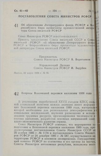 Постановление Совета Министров РСФСР. Вопросы Всесоюзной переписи населения 1989 года. 29 марта 1988 г. № 106