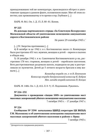 Из доклада партизанского отряда «За Советскую Белоруссию» Могилевской области об уничтожении немецкими оккупантами евреев в Костюковичском районе. Не ранее 29 сентября 1943 г. // НАРБ. Ф. 1406. Оп. 1. Д. 412. Л. 8–9, 15. Подлинник. Рукопись.