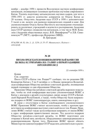 Главная Китайская Народная Республика в 1950-е годы. Т. 2. Друг и союзник н... Документы Письмо председателя Внешнеполитической комиссии ЦК ВКП(б) В.Г. Григ...