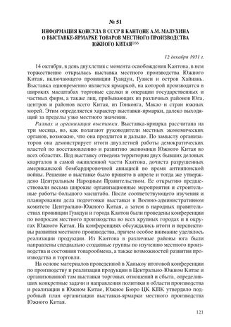 Информация консула СССР в Кантоне А.М. Малухина о выставке-ярмарке товаров местного производства Южного Китая. 12 декабря 1951 г.