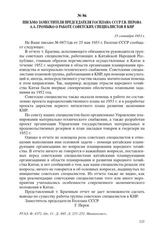 Главная Китайская Народная Республика в 1950-е годы. Т. 2. Друг и союзник н... Документы Письмо заместителя председателя Госплана СССР Г.В. Перова А.А. Гром...