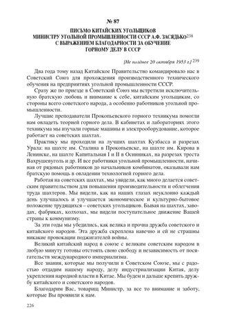Главная Китайская Народная Республика в 1950-е годы. Т. 2. Друг и союзник н... Документы Письмо китайских угольщиков министру угольной промышленности СССР А...
