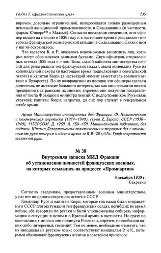 Внутренняя записка МИД Франции об установлении личностей французских военных, на которых ссылались на процессе «Промпартии». 8 декабря 1930 г. [2] // Архив Министерства иностранных дел Франции. Ф. Политическая и коммерческая переписка (1914-1940), серия Z, Европа, СССР (1930-1940), 117СРСОМ. Д. 1269. Л. 160.