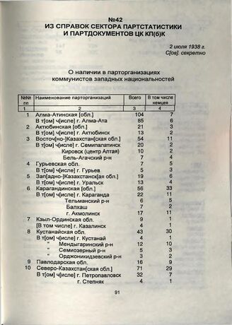 Из справок сектора партстатистики и партдокументов ЦК КП(б)К. 2 июля 1938 г.