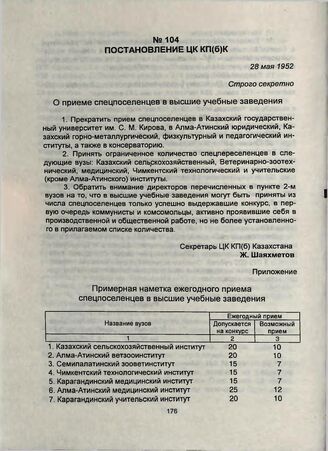 Постановление ЦК КП(б)К. 28 мая 1952