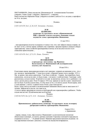Из заявления в прокуратуру жительницы дер. Ивановка Белостокского с/с Иваненкиной А.И. на неправильное изъятие у нее имущества. 18 мая 1936 г.
