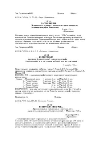 Из протеста прокурора Кривошеинскому райисполкому о необходимости пересмотра постановления Белостокского с/с от 10 сентября 1936 г. 11 сентября 1936 г. // ГАТО. Ф. Р-678. Оп. 1. Д. 61. Л. 2. Копия. Машинопись.