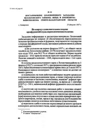 Постановление объединенного заседания Келлеровского райкома ВКП(б) и президиума райисполкома Северо-Казахстанской области. с. Келлеровка, 25 февраля 1937 г. // ГАСКО. Ф. 1189. Оп. 23 Д. 9. Л. 71 и об. Подлинник.