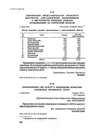 Информация представительства польского посольства Алма-Атинскому облисполкому о численности польских граждан, проживающих на территории области. г. Алма-Ата, Не позднее 10 марта 1942 г.