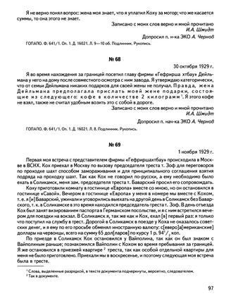 Из протокола допроса И.А. Шмидта в Полномочном представительстве ОГПУ по Уралу о деятельности германских фирм в г. Соликамске и его взаимоотношениях с представителями этих фирм. 30 октября 1929 г., г. Свердловск [2]