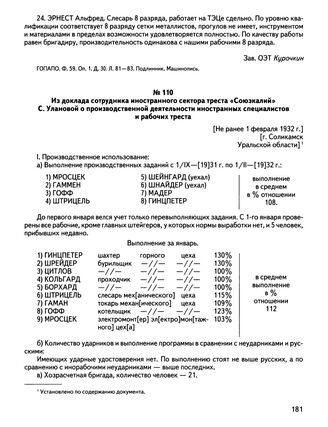 Из доклада сотрудника иностранного сектора треста «Союзкалий» С. Улановой о производственной деятельности иностранных специалистов и рабочих треста. [Не ранее 1 февраля 1932 г.], [г. Соликамск Уральской области] // ГОПАПО. Ф. 59. Оп. 1. Д. 30. Л. 27—28. Подлинник. Машинопись.