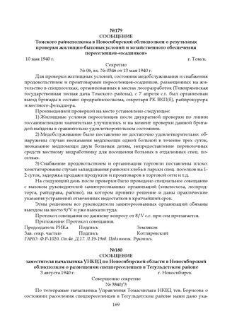 Сообщение Томского райисполкома в Новосибирский облисполком о результатах проверки жилищно-бытовых условий и хозяйственного обеспечения переселенцев-«осадников». 10 мая 1940 г.