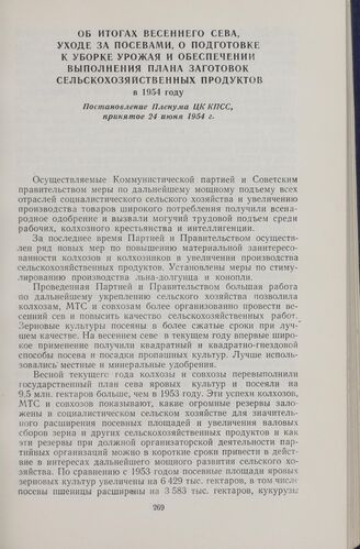 Об итогах весеннего сева, уходе за посевами, о подготовке к уборке урожая и обеспечении выполнения плана заготовок сельскохозяйственных продуктов в 1954 году. Постановление Пленума ЦК КПСС, принятое 24 июня 1954 г.