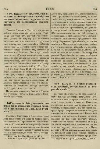Органы государственного управления -- Министерство народного просвещения Российской империи -- Постановления, 1863 г.