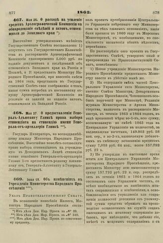 Органы государственного управления -- Министерство народного просвещения Российской империи -- Постановления, 1863 г.