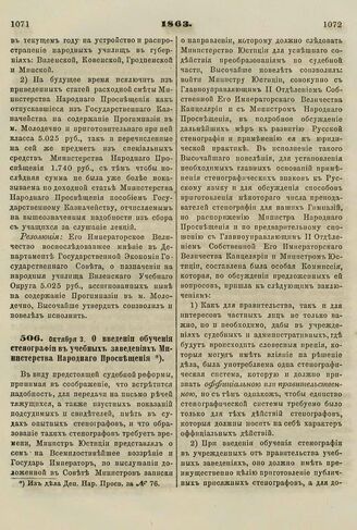 1863. Октября 3. О введении обучения стенографии в учебных заведениях Министерства Народного Просвещения