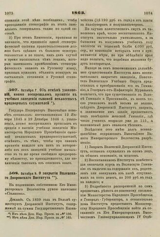1863. Октября 7. Об отмене узаконении, коими воспрещалось принятие в учебные заведения сыновей неклассных придворных служителей // Из дела Деп. Нар. Просв. за № 136.