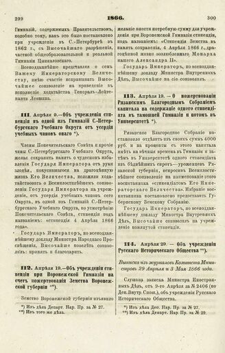 1866. Апреля 19. — О пожертвовании Рязанским Благородным Собранием капитала на содержание одного стипендиата в тамошней Гимназии и потом в Университете