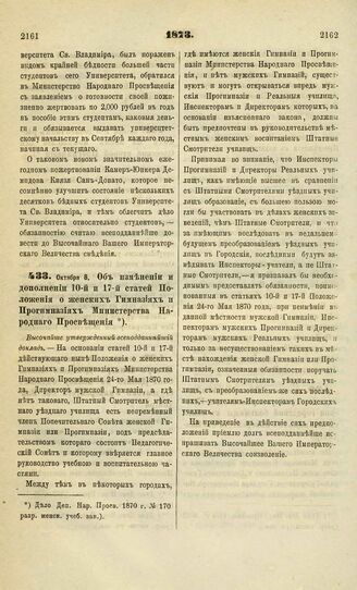 1873. Октября 8. Об изменении и дополнении 10-й и 17-й статей Положения о женских Гимназиях и Прогимназиях Министерства Народного Просвещения. Высочайше утвержденный всеподданнейший доклад
