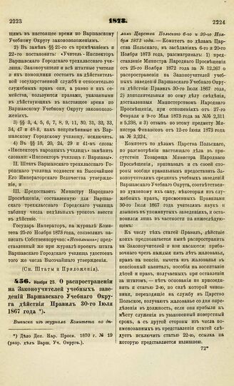 1873. Ноября 25. О распространении на Законоучителей учебных заведений Варшавского Учебного Округа действия Правил 30-го Июля 1867 года