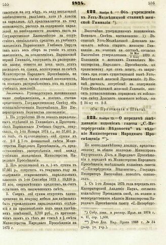 Органы государственного управления -- Министерство народного просвещения Российской империи -- Постановления, 1874 г.