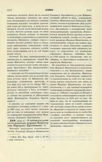 1890. Июня 5. — О замещении должности редактора журнала Министерства Народного Просвещения. Высочайше разрешенный всеподданнейший доклад