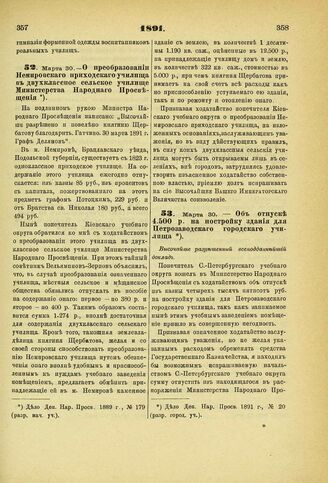 Органы государственного управления -- Министерство народного просвещения Российской империи -- Постановления, 1891 г.