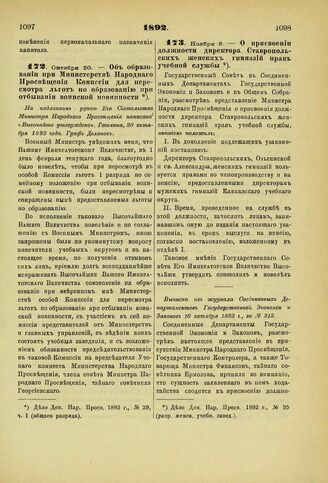 1892. Октября 20. — Об образовании при Министерстве Народного Просвещения Комиссии для пересмотра льгот по образованию при отбывании воинской повинности // Дело Деп. Нар. Просв. 1892 г., № 29, ч. I (общего разряда).
