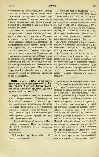 1895. Мая 29. — Об упразднении музея классической археологии Императорской Академии Наук и о некотором усилении средств других музеев сей Академии // Дело Деп. Нар. Просв. 1894 г., № 7 (разр. учен. учрежд.).