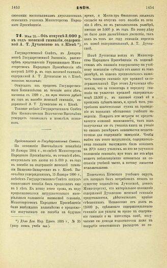 1898. Мая 25. — Об отпуске 3.000 р. в год женской гимназии, содержимой А.Т. Дучинской в г. Киеве