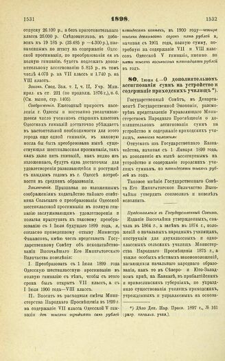 1898. Июня 4. — О дополнительном ассигновании сумм на устройство и содержание приходских училищ