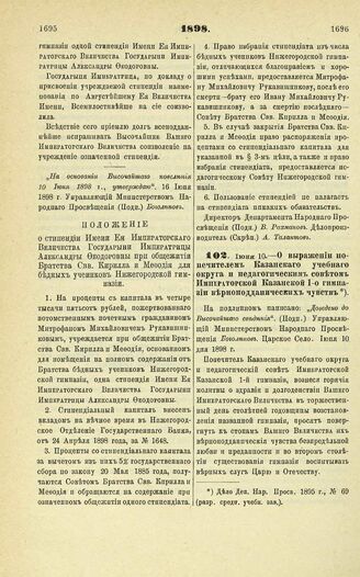 1898. Июня 10. — О выражении попечителем Казанского учебного округа и педагогическим советом Императорской Казанской 1-й гимназии верноподданических чувств // Дело Деп. Нар. Просв. 1895 г., № 69 (разр. средн. учебн. зав.).