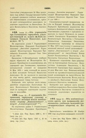 Органы государственного управления -- Министерство народного просвещения Российской империи -- Постановления, 1898 г.