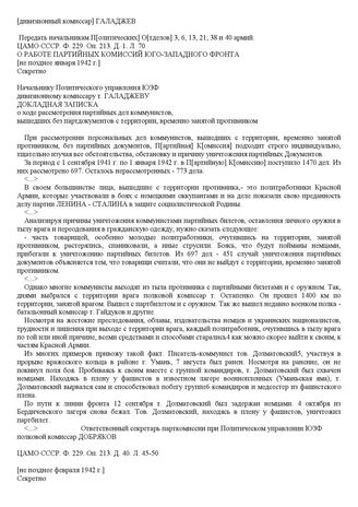 Справка Парткомиссии при Политическом управлении Юго-Западного фронта. [Не позднее февраля 1942 г.] // ЦАМО СССР. Ф. 229. Оп. 213. Д. 40. Л. 28331.