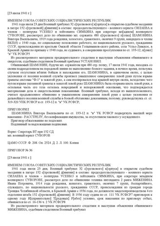 Приговор № 36. [23 июля 1941 г.] // ЦАМО СССР. Ф. 208. Оп. 2524. Д. 2. Л. 101. Копия.