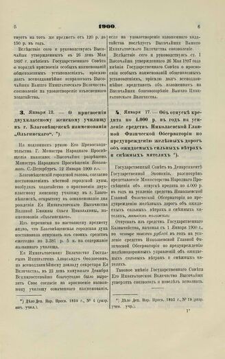 1900. Января 17. — Об отпуске кредита по 4.000 р. в год на усиление средств Николаевской Главной Физической Обсерватории по предупреждению железных дорог об ожидаемых сильных ветрах и снежных метелях